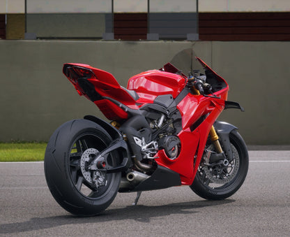 カーボンファイバー製のこの秀逸なアクセサリーは、レーシングを明確に表すルックです。上質な素材がV4の軽量化と高性能を可能にすると同時に、紛れもないスポーティな外観をさらに引き立てます。